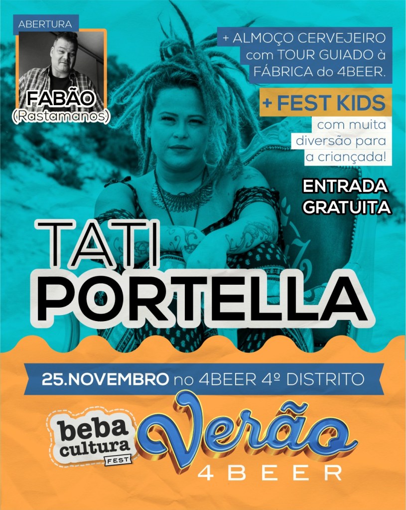 No próximo sábado, dia 25 de novembro, o clima de Verão se antecipa e chega antes aqui no 4Beer 4º Distrito. A programação está simplesmente demais e conta com shows da super Tati Portella (@tati_portella) e de Fabão (@fabaomusic).