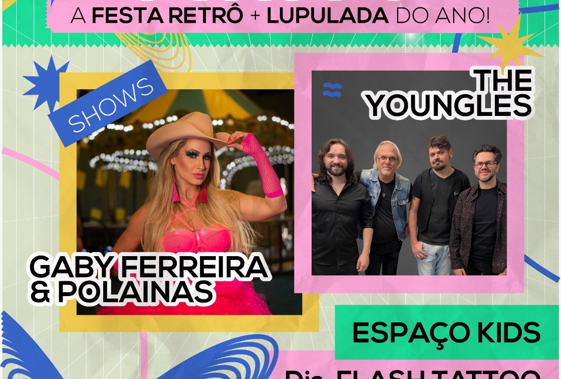 Atrações: DJs, Flash Tattoo, Espaço Kids, shows com The Youngles e Gaby Ferreira & Polainas